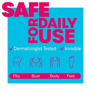 USE FOR PITS, UNDERBOOBS, LOWER BACK, THIGHS, FEET AND MORE: Use it anywhere you want to tackle odor, including your pits, underboobs, lower back, thighs, feet and more. Feel fresh and confident throughout the day.