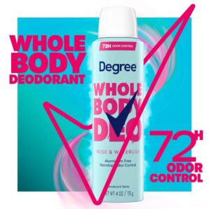Degree Whole Body Aluminum Free Deodorant Spray for Women 72H Odor Protection – Rose & Waterlily – 4oz