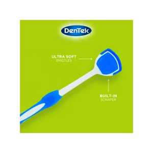 DenTek Orabrush Fresh Breath Tongue Cleaner is a dual-action tongue cleaner featuring ultra-soft, micro-pointed bristles that reach into the deep crevices of the tongue to loosen stinky bacteria. The built-in tongue scraper then removes the bacteria helping to leave your breath fresh. Designed after a surgeon’s scrub brush, Orabrush’s micro-pointed bristles are designed specifically for the tongue since 90% of bad breath comes from a dirty tongue. Orabrush is the # 1 selling tongue cleaner.* To use the tongue scraper first wet Orabrush with water and extend the tongue. Brush back and forth several times, cleaning the entire surface.