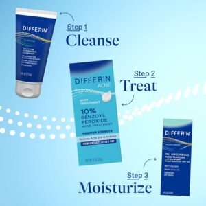 • MAXIMUM STRENGTH 10% BENZOYL PEROXIDE: One 1 oz tube of Differin Acne Spot Treatment with 10% benzoyl peroxide as the strongest over-the-counter (OTC) concentration to visibly reduce acne size and redness after 1 use.