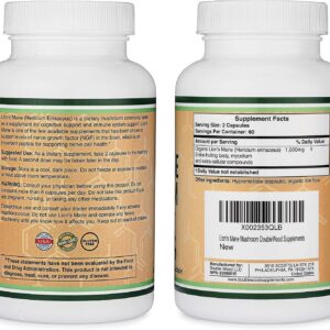 - Extra Long Two Month Supply: Doublewood provides enough lion’s mane mushroom supplement to last two months. (Whopping 120 capsules)