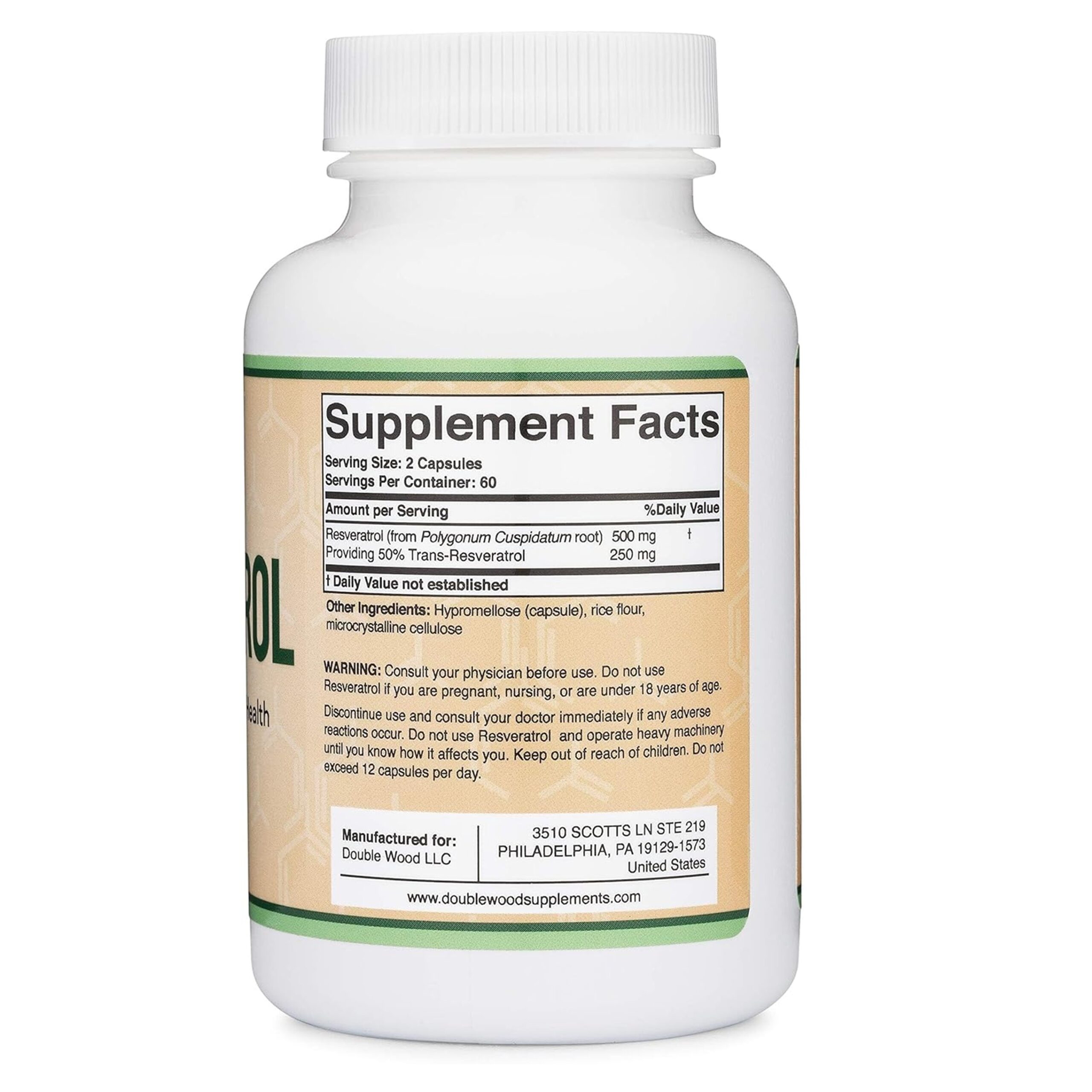 Double Wood Resveratrol Supplement 500mg Per Serving, 120 Capsules