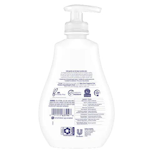 • Hypoallergenic lotion soothes dry skin from the first use • Ultra-gentle baby lotion made with 100% skin-natural nutrients* • Formulated with prebiotic moisturizer to support baby skin’s natural health • Dermatologist and pediatrician tested, suitable for newborn skin • Moisturizing lotion suitable for eczema-prone skin • Certified cruelty-free by PETA