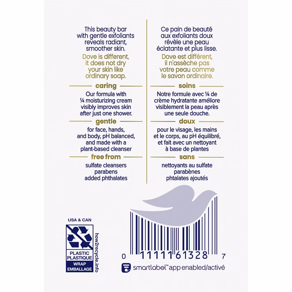 LOCK IN MOISTURE: Dove Gentle Exfoliating Beauty Bar, with exfoliating beads, nourishes and revitalizes skin to give you softer, smoother, more radiant-looking skin than ordinary bar soap.