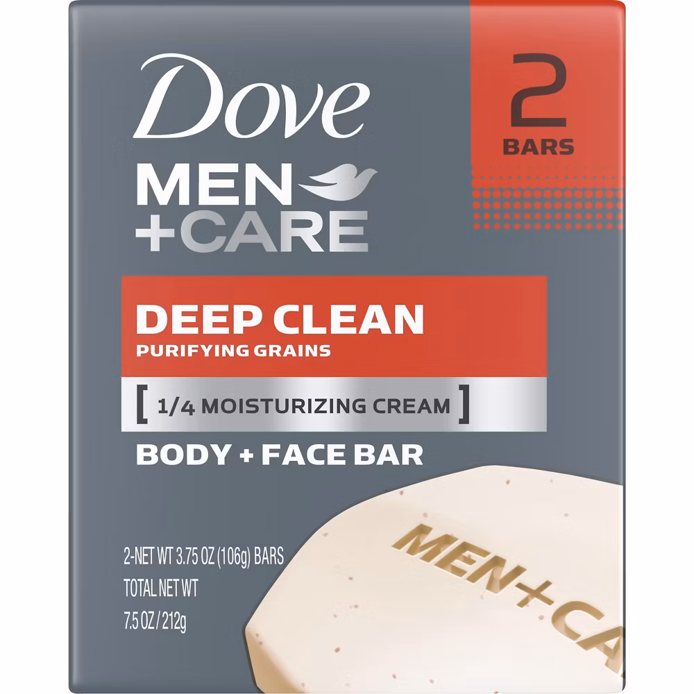 Dove Men+Care Men’s Bar Soap Deep Clean, 3.75 oz, 2 Bars