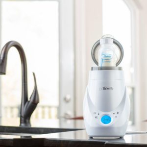 - The bestselling Dr. Brown’s™ Deluxe Bottle Warmer is now pulling double duty! Quickly and safely warm bottles and food jars – and sanitize – using steam heat with the Dr. Brown’s™ Deluxe Bottle Warmer & Sterilizer. Fast warming is at your fingertips! With the press of a few buttons, you can easily find preprogrammed warming settings for many combinations of baby bottle type, size, and temperature – from warming breast milk to heating up baby formula. An audible alarm with auto shut-off tells you when it’s done, so there’s no risk for overheating. One-button start functioning with a great memory allows you to use your last setting to speed up your bottle prep routine – or adjust the timer and create your own custom setting. Save even more time with the large water reservoir that heats several bottles before a refill is needed. Even the safe sterilizer is set for speedy cleaning; easily sterilize bottle nipples, bottle parts, pacifiers, teethers – plus a whole bottle! Fits all Dr. Brown’s® bottles and most other bottle brands.