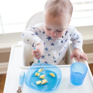 Tall edges on the plate make scooping and grabbing food simpler for little hands and make less mess at mealtime. The stackable style makes for organized storage, while the microwave- and freezer-safe material makes food prep a cinch.