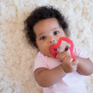 Help baby work out pain and discomfort during teething with the bitable, chewable Flexees Teether, made of soft and durable 100% silicone. Designed by a pediatric dentist, this ergonomic teether is perfect for tongue exploration and speech development.