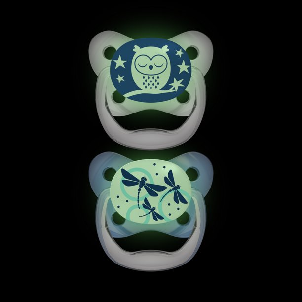 - GLOW-IN-THE-DARK SHIELD. The glow-in-the-dark shield makes the pacifier easy to locate at night and is easy to recharge – just expose to light.