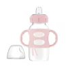 Easy to grip. Easy to sip. Dr. Brown’s milestones sippy bottle with handles is the perfect first step from bottle to cup. Introducing a sippy spout has never been simpler – The soft silicone sippy spout is used in place of a on the Dr. Brown’s Bottle that baby is already familiar with. Easy-grip 100% silicone handles are removable and fit most wide bottles and sippy cups, while the Snap-On cap keeps the spout clean when on the go. Sippy spout fits any Dr. Brown’s optionsplus Wide-Neck Bottle after vent is removed. All parts are sterilizer and dishwasher safe (top rack). 9 oz/270 ml, 6Mplus. BPA free.