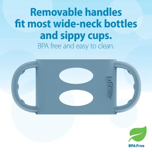 - Easy-to-hold removable 100% silicone handles; handles fit most wide bottles sippy cups