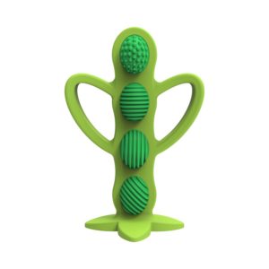Super-soft silicone ridges and bumps gently clean baby’s teeth and gums and the flat suction base keeps the toothbrush in the upright position for convenient countertop storage. Curved handles help little fingers maintain a good grip as you help them brush. The Peapod features multiple textures to massage baby’s sore gums and is great for promoting tongue exploration. On extra sore days, refrigerate teether to give baby cooling comfort. Dr. Brown’s™ Peapod Teether + Training Toothbrush is dishwasher safe (top rack) and sterilizer friendly, making cleaning a breeze.