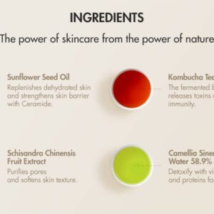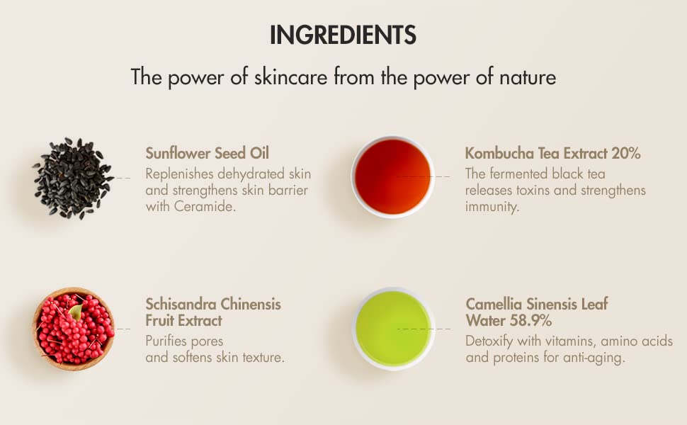• Nourishing Care: Infused with Kombucha Tea Extract, Camellia Leaf Water, and Sunflower Oils, it delivers intense moisture while soothing and nourishing the skin, helping restore balance and improve skin’s overall appearance.