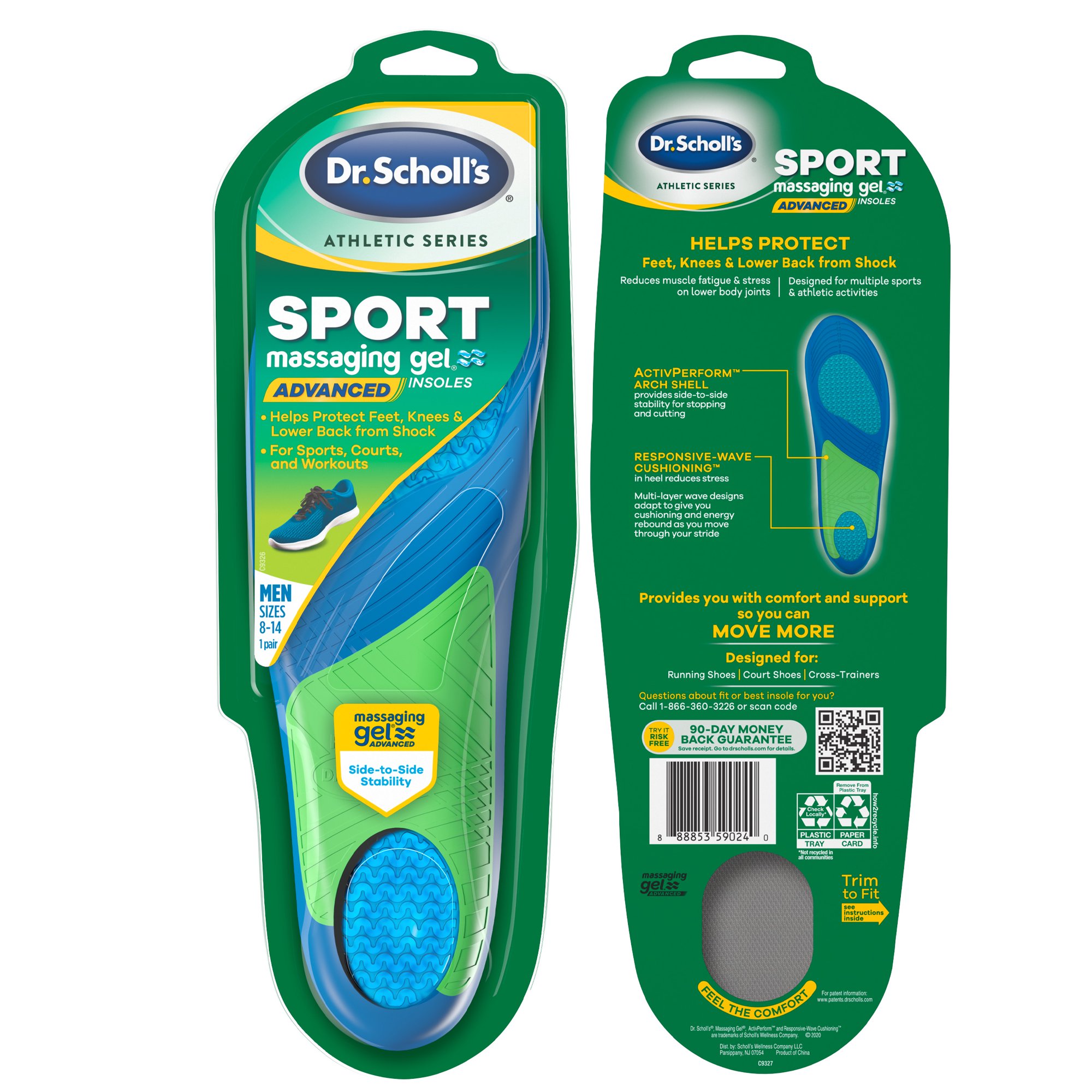 Dr. Scholl’s Sport Massaging Gel Advanced Insoles have superior comfort and protects feet, knees & lower back from shock. They reduce muscle fatigue and stress on lower body joints and are designed for multiple sports & athletic activities. Move over 10% more with Massaging Gel Advanced. The Responsive-Wave cushioning in the heel reduces stress. The multi-layer wave designs adapt to give you cushioning and spring as you move through your stride. The Active perform March Shell provides lateral stability for stopping and cutting. These insoles protect your body from the impact of shock so you can Move More. They fit in a range of shoes including running shoes, court shoes and cross-trainers. This package contains one pair of Insoles to fit Men’s shoe sizes 8-14 and was specifically developed for athletes. Dr. Scholl’s has been a trusted brand in foot care since 1904 when Dr. William Mathias Scholl, grandson of a cobbler, launched the company under the name Dr. Scholl Inc.
