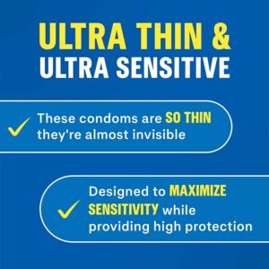 - ULTRA THIN & ULTRA SENSITIVE: Invisible condoms are the thinnest developed by Durex and are designed to maximize sensitivity while providing a high level of protection