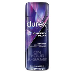 - Silicone Personal Lubricant: Durex Cheeky Play is a silky smooth, long-lasting silicone-based lubricant intended for vaginal, penile, and anal application to enhance intimate sexual activities.