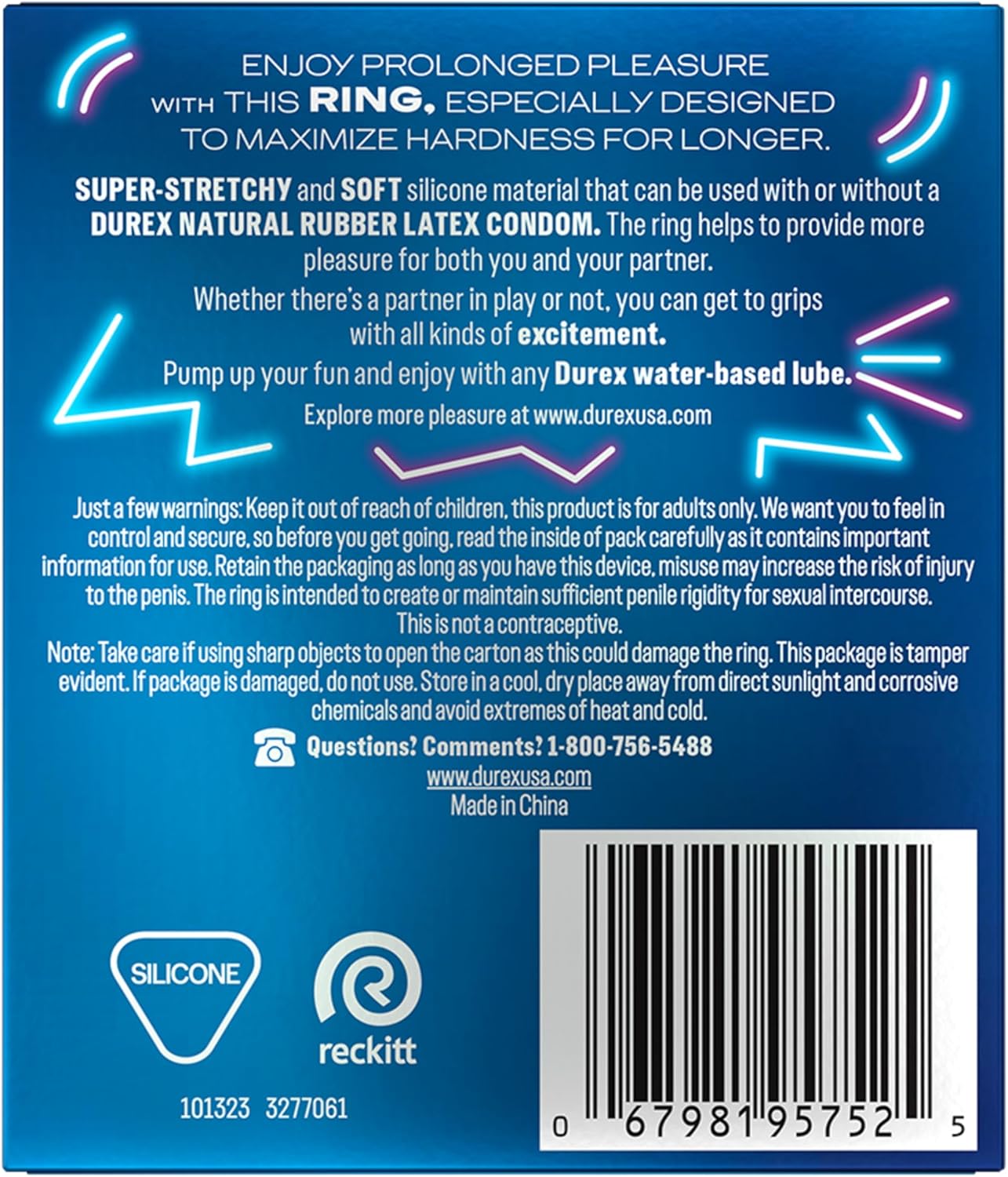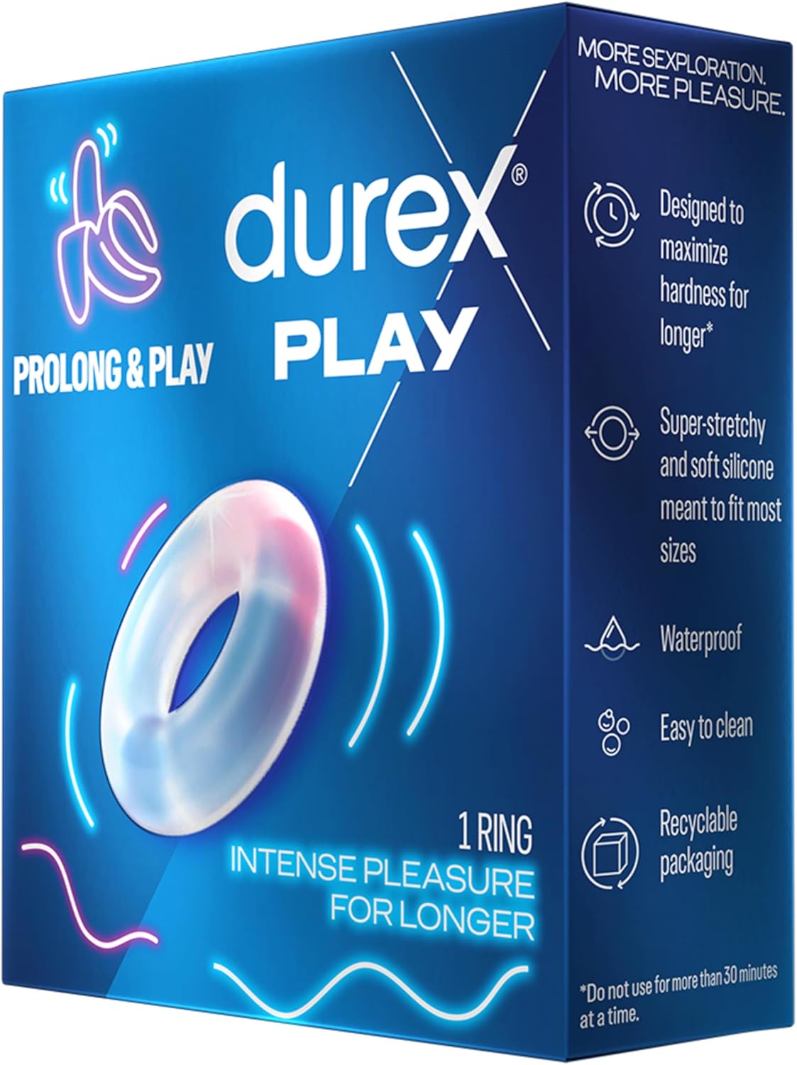 Durex Prolong & Play Ring, Intense Pleasure, Stay Hard for Longer, Super Stretchy and Soft, Waterproof, 1 ct