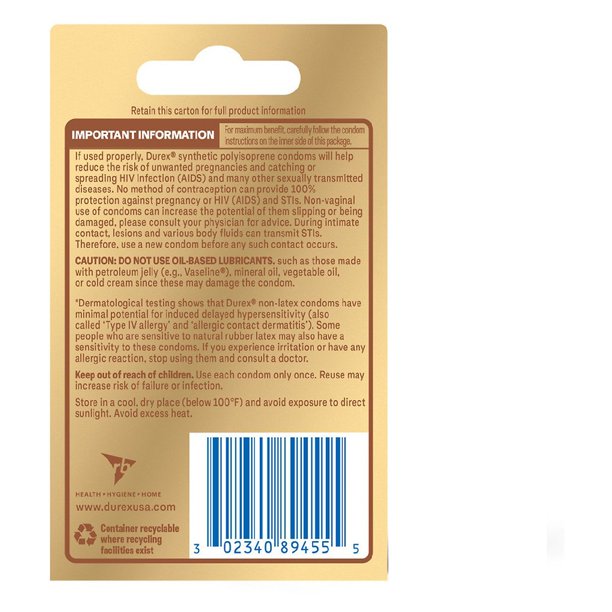 Durex Avanti Bare Real Feel Condoms are non-latex polyisoprene condoms for men, lubricated and offer a natural skin on skin feeling. They are suitable for people who are sensitive to latex condoms, please read all label details upon delivery. For maximum benefit, carefully follow the condom instructions on the inner side of this package