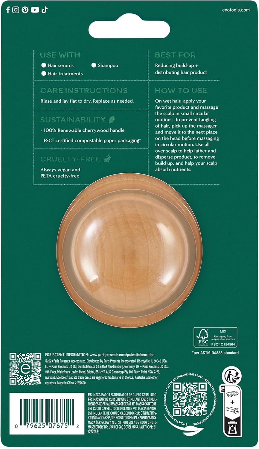 The EcoTools Stimulating Shower Scalp Massager allows you remove product build-up while cleansing your scalp. This easy-to-use handheld hair care massager is perfect for the shower. Just lather shampoo, massage into your scalp and circulate. Using a circular motion helps your scalp absorb nutrients and give a deep massage. Relax and let go of all of your stress with this reusable, vegan, and cruelty-free scalp massager.