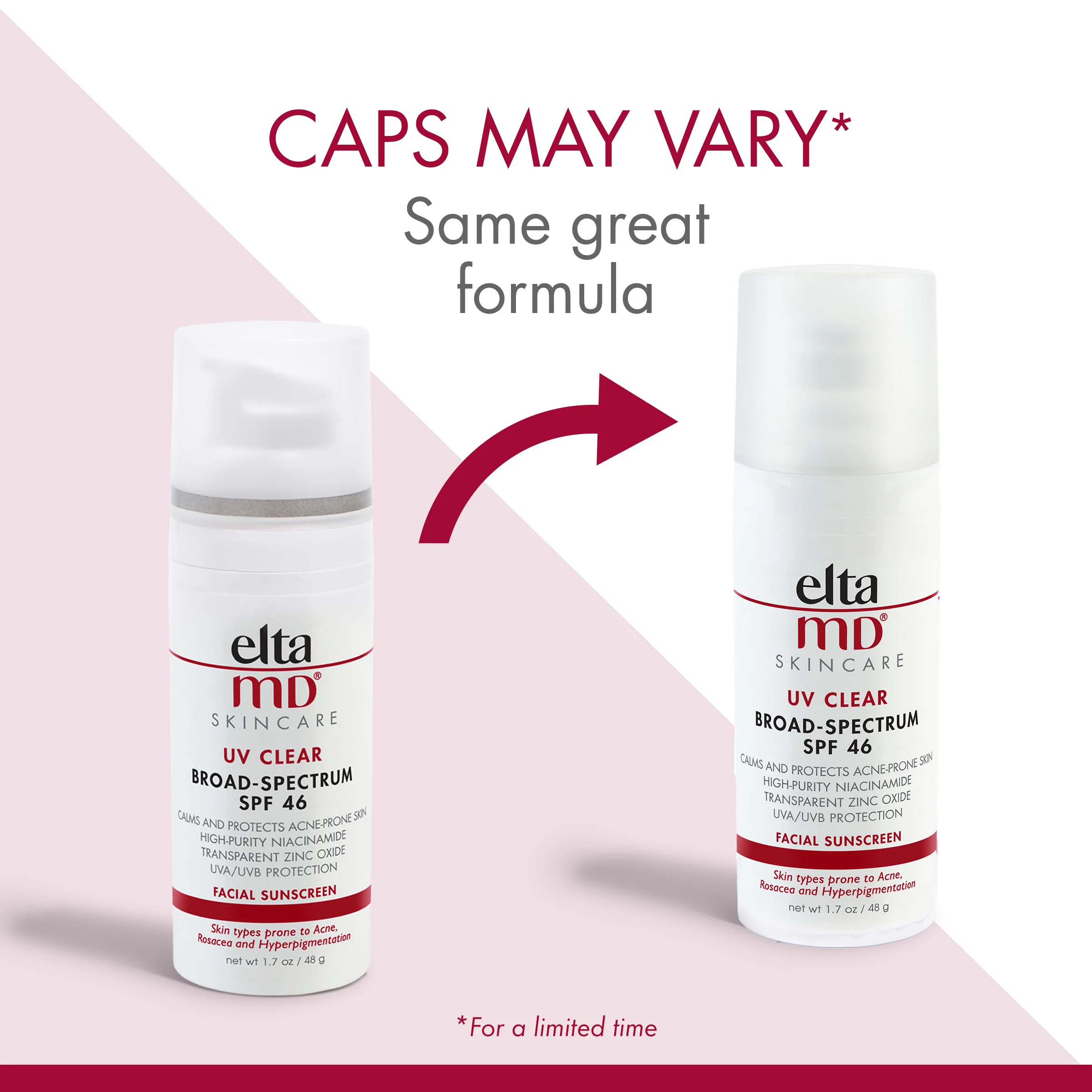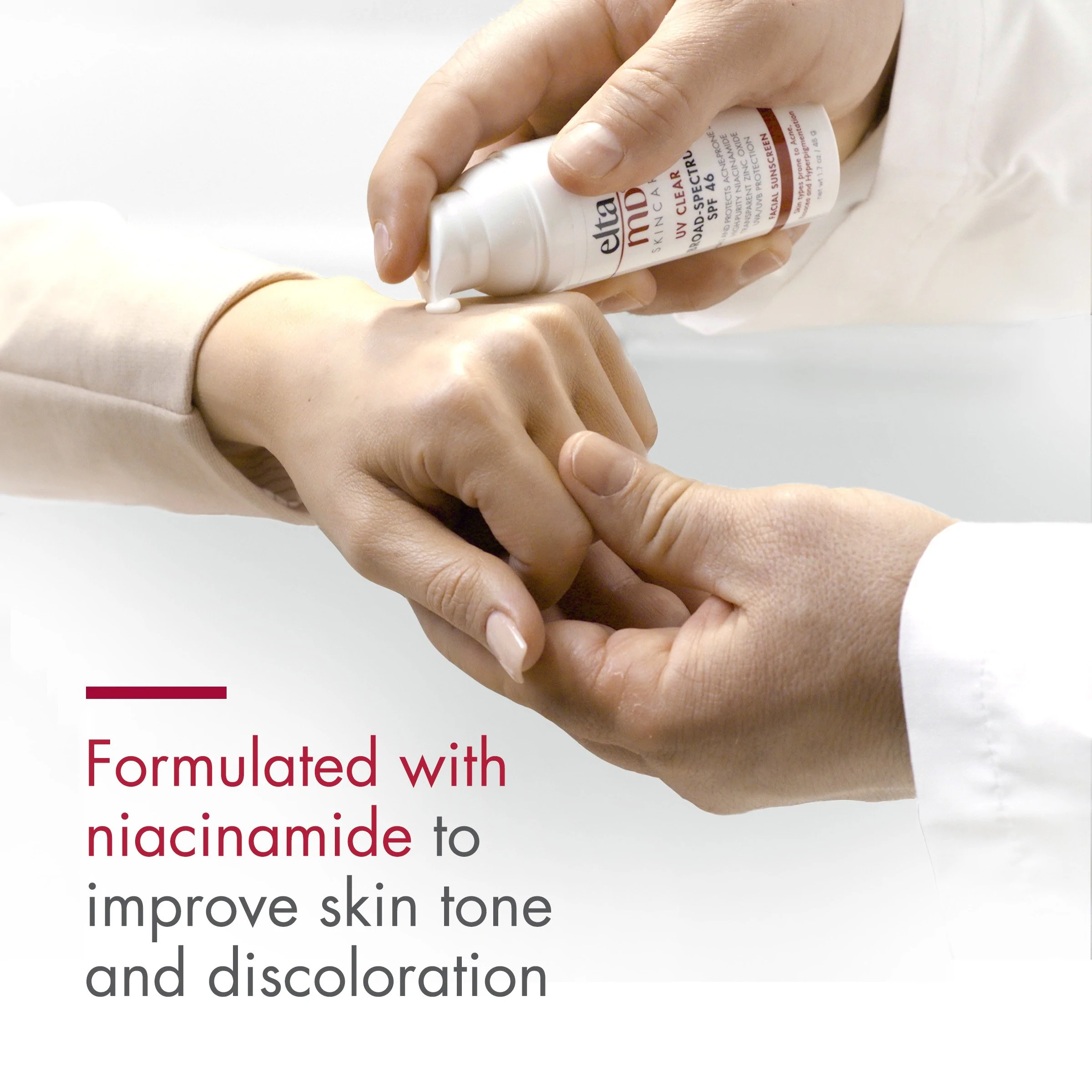 Oil-free EltaMD UV Clear helps calm and protect sensitive skin types prone to discoloration and breakouts associated to acne and rosacea. It contains niacinamide (vitamin B3), hyaluronic acid and lactic acid, ingredients that promote the appearance of healthy-looking skin. Very lightweight and silky, it may be worn with makeup or alone. Choose from tinted and untinted formulas for use every day