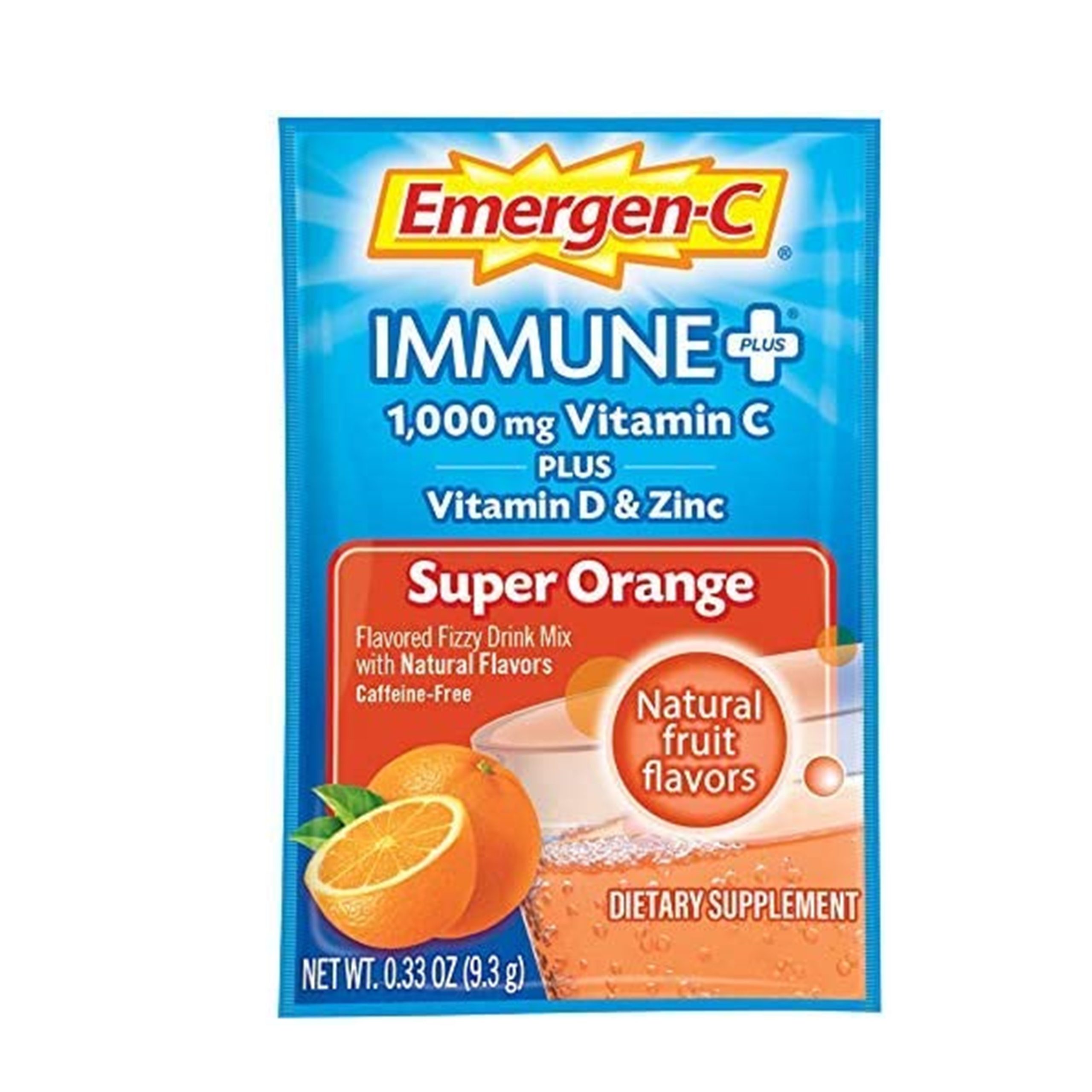 Start your day with a glass of sunshine. Emergen-C Immune+ Super Orange* is power-packed with key nutrients including vitamin C, vitamin D, zinc and a proprietary complex with Wellmune WGP® beta-glucans and arabinogalactans.