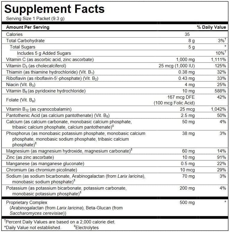 - Contains the Proprietary complex with Wellmune WGP beta-glucans and arabinogalactans