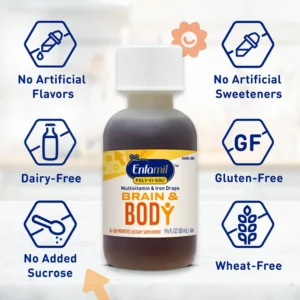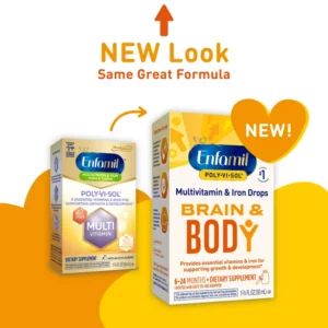 When transitioning your baby to solid foods, Enfamil Poly-Vi-Sol—available with or without iron—helps make sure they are still getting the vitamins they need to support healthy growth,* like vitamins A, C, D, E, and some B vitamins. Enfamil vitamins can be easily given by dispensing directly into the mouth or mixed with breast milk, formula, juice, cereal or other foods to increase acceptance. All Enfamil Pediatric Vitamins are gluten-free and have no artificial colors or artificial flavors. *This statement has not been evaluated by the Food and Drug Administration. This product is not intended to diagnose, treat, cure or prevent any disease.