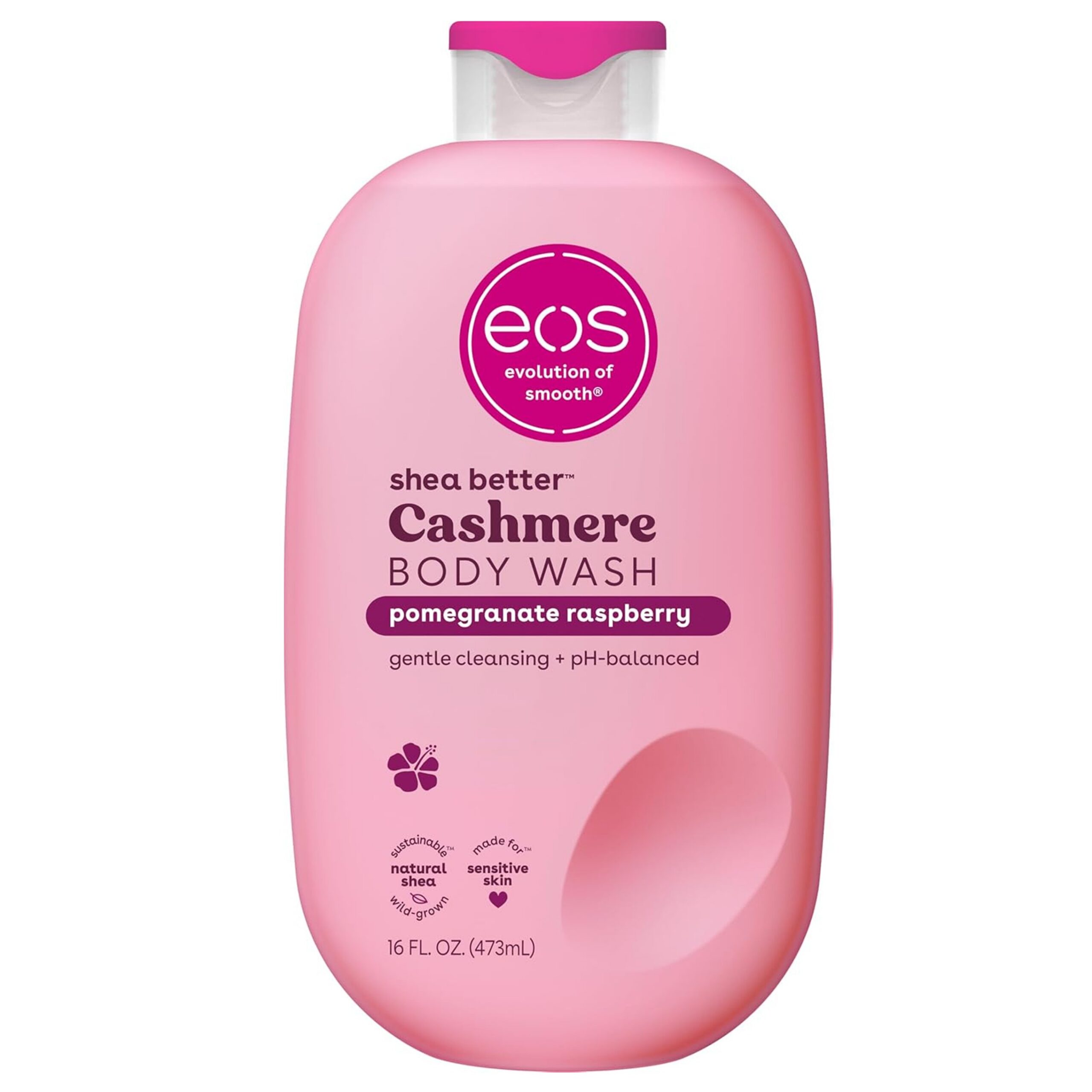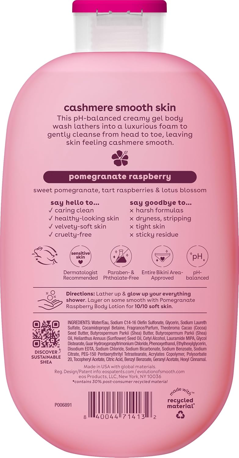 eos Cashmere Body Wash – Pomegranate Raspberry, Moisturizing Body Wash, Creamy Gel Formula, with Shea Butter, Glycerin, Vitamin E, pH Balanced, Sensitive Skin, Vegan, 16 fl oz