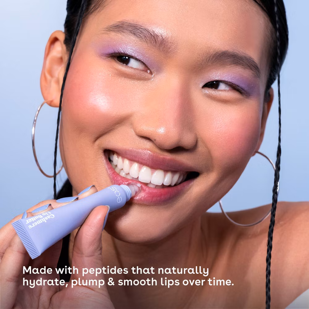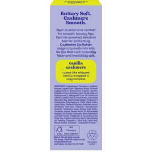 eos Vanilla Cashmere Lip Butter provides plush comfort for smooth, bouncy lips with a luxurious, cushiony feel. Infused with a performance-level peptide and our Cashmere Smooth Complex™ of shea, cocoa, and argan butters, this lip butter hydrates, plumps, and smooths lips over time. It locks in moisture, protecting lips from environmental stressors. The natural matte finish offers a breathable, comfortable wear that’s never sticky or greasy. Experience irresistibly soft, fuller-looking lips with a smooth, healthy appearance—your go-to for long-lasting hydration and plumper lips over time.