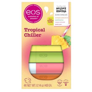 eos Flavor Lab Secret Menu Lip Balm Gift Set – Tropical Chiller, Limited-Edition, Moisturizing, Hydrating, Dry Lips, Variety Pack, 0.14 oz, 4-Pack