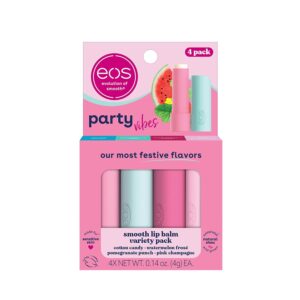 eos Party Vibes Lip Balm Variety Pack- Cotton Candy, Watermelon Frosé, Pomegranate Punch & Pink Champagne, All-Day Moisture Lip Care Products, 0.14 oz, 4-Pack