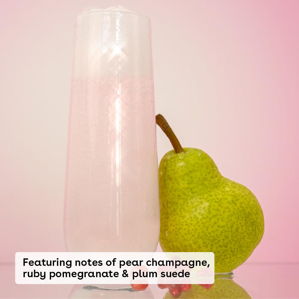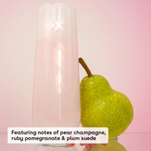 - PINK CHAMPAGNE: Features notes of pear champagne, ruby pomegranate & plum suede.