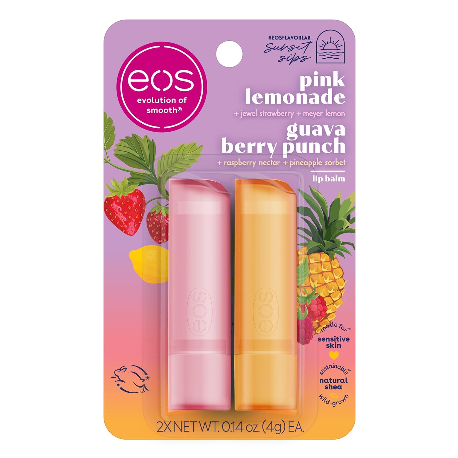 eos Sunset Sips Lip Balms- Pink Lemonade & Guava Berry Punch, All-Day Moisture, Lip Care, 0.14 oz, 2-Pack