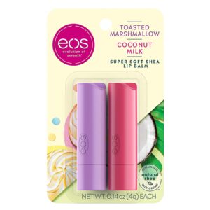 eos Super Soft Shea Balm for Moisturizing Dry Lips, Toasted Marshmallow and Coconut Milk, 24 Hour Hydration, Gluten Free, 0.14 Oz, Pack of 2