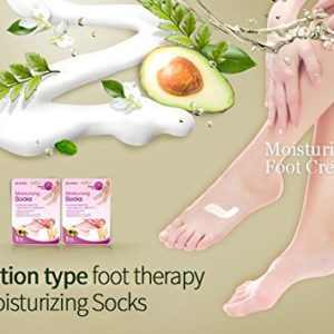 • HEAL YOUR HEELS: Deep moisturizing treatment from heel to toe for soft and silky feet. Enriched with oils and herbal extracts, the socks contain a gel that will leave your feet feeling soothe and soft like a baby’s foot! Loaded with intensive fortifying lotion and cream to strengthen nails, moisturize hands/feet & softens cuticles and rough heels.