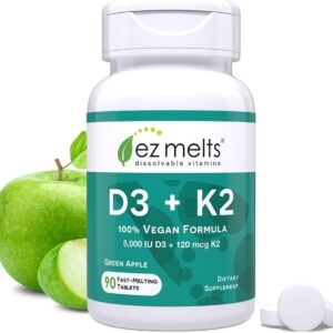 EZ Melts Dissolvable Vitamin D3 K2 5,000 IU, Bone & Joint Support, Sugar-Free, 3-Month Supply