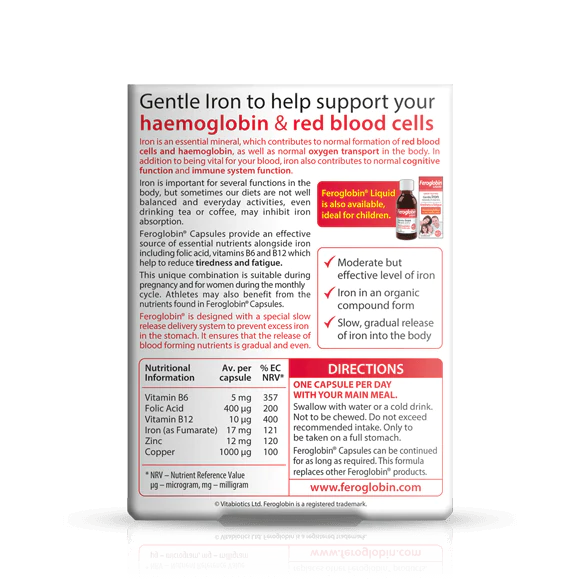Convenient and gentle on your stomach, whilst providing sustained iron which contributes to the reduction of tiredness and fatigue, immune system function and cognitive function.