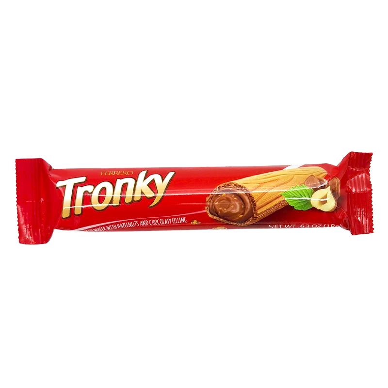 Ferrero Tronky Wafer filled with chocolate cream with delicate chopped hazelnuts, this snack will sure to satisfy your sweet tooth. Enjoy any time and any day, on the go or in the office.