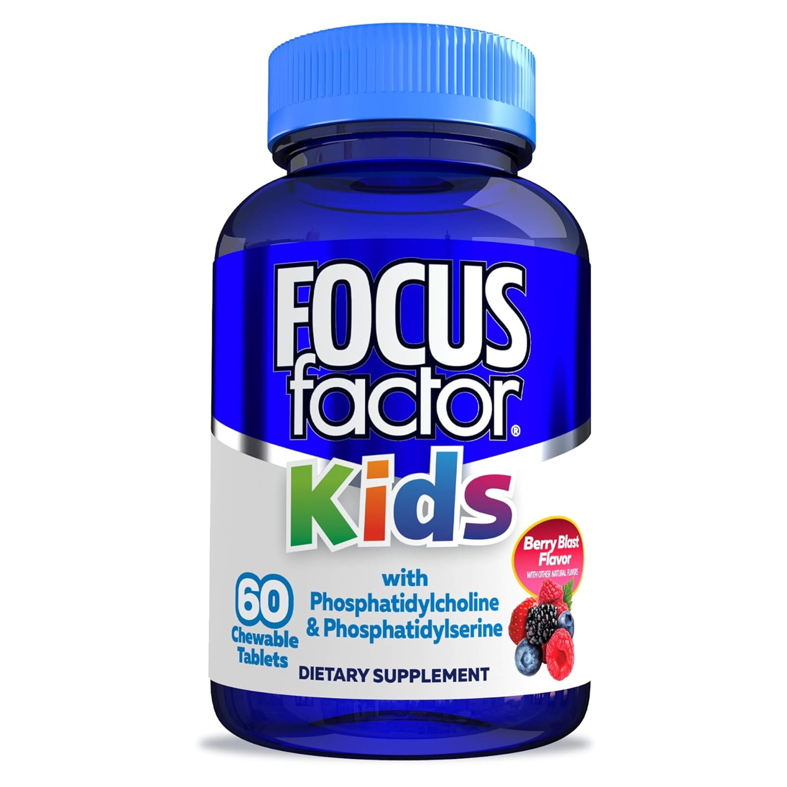 Focus Factor Kids Daily Vitamin is a brain supplement for kids ages 4 and up, that you can feel good about. Our Focus Factor kid supplement has been specially formulated for children to help support healthy brain function (brain health support), with neuro-nutrients, essential vitamins, and more. Our trusted kid vitamin combines high-quality cognitive ingredients such as phosphatidylserine, choline, L-Tyrosine and bilberry with vitamins B12, C, D3 and E. Like other parts of their body, your child’s brain needs proper nutrition to perform its best whether at home or school. And unlike other brain health gummies, our delicious berry blast flavored chewable contains no artificial colorings, sweeteners, fragrances or preservatives and are gluten-free, dairy-free and gelatin free. So go ahead and feed their Inner Einstein with Focus Factor Kids Brain Health Vitamin!