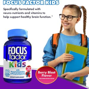 Focus Factor Kids Chewable Daily Vitamin, 60 Count, Brain Health Support with Vitamin B12, C & D3