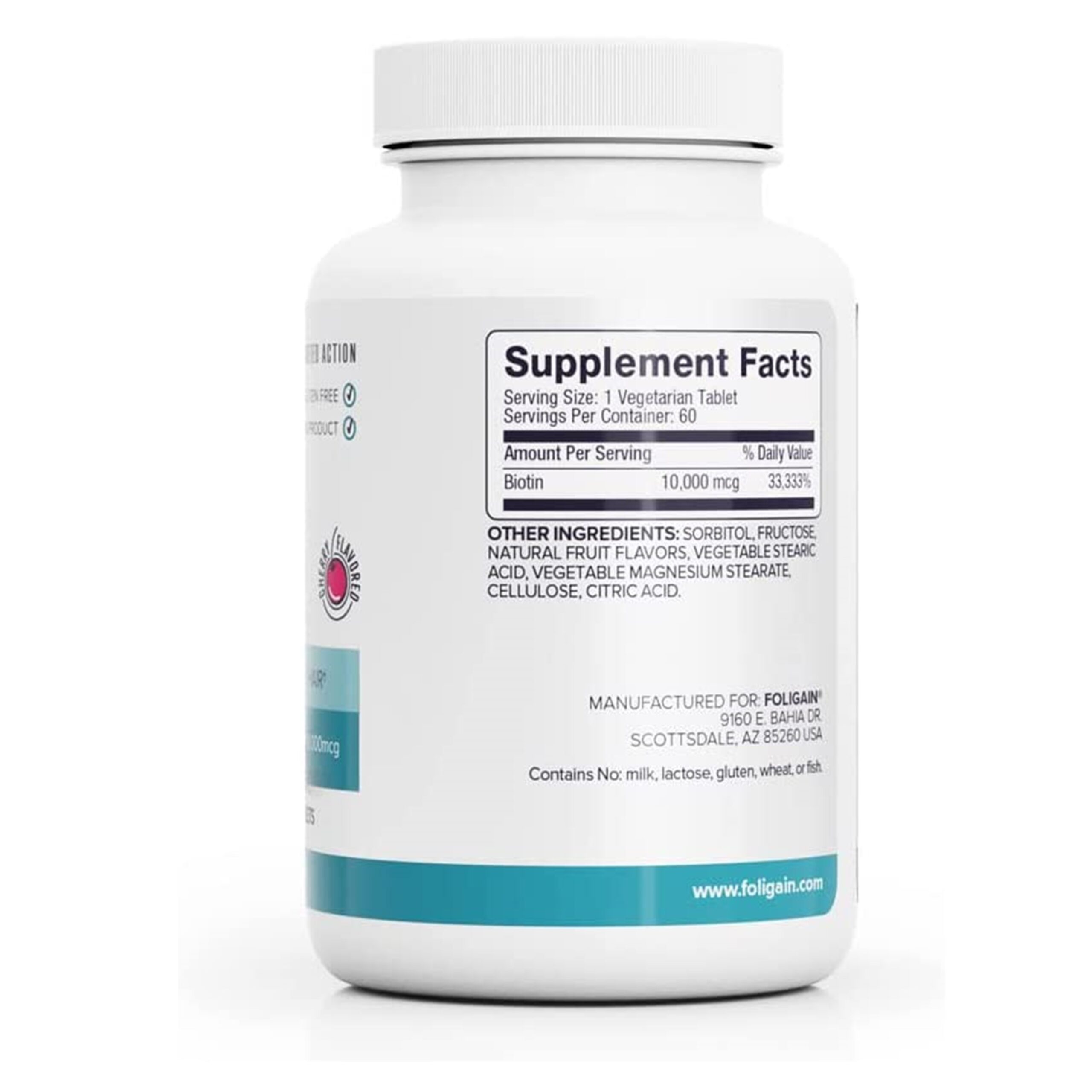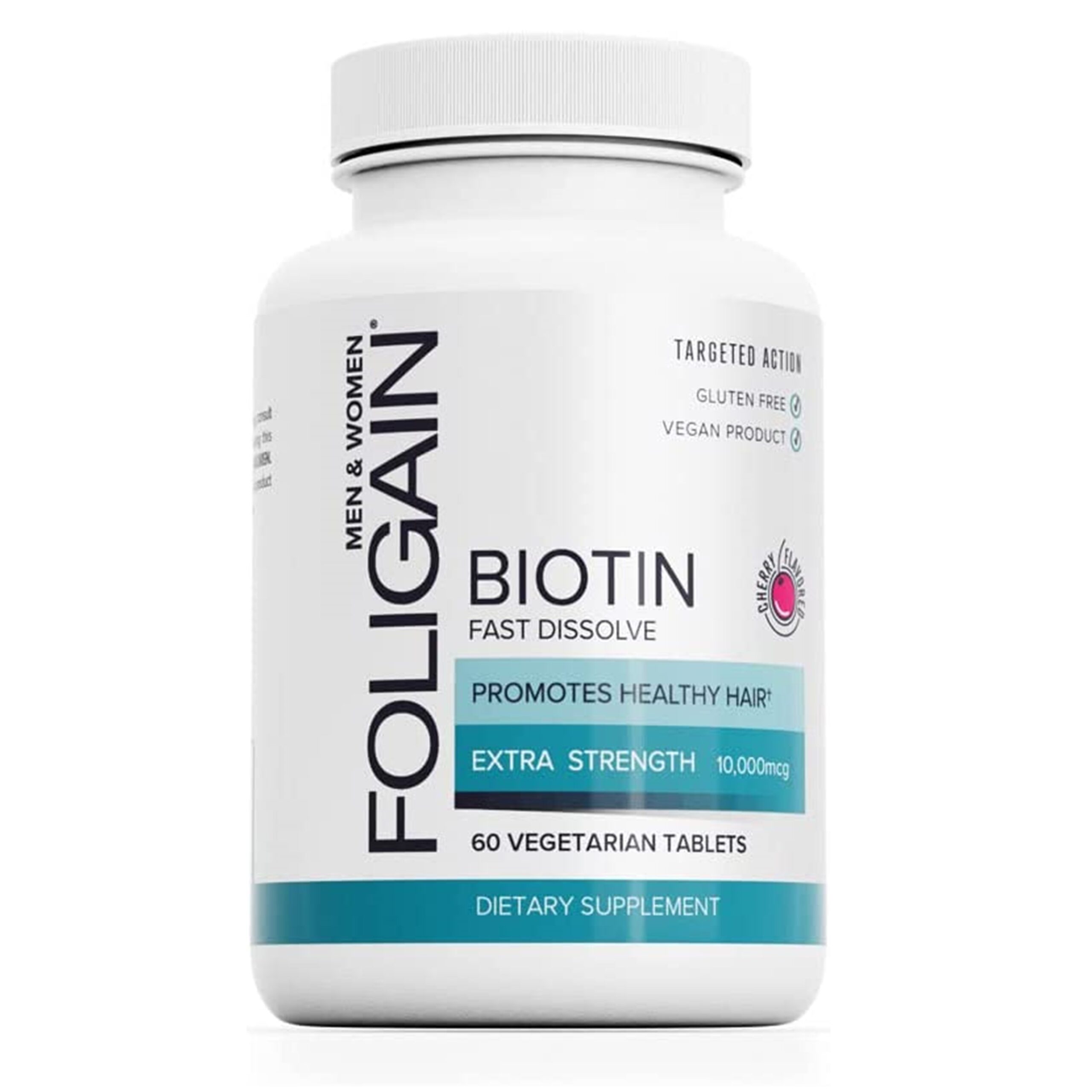 Foligain Biotin 10,000mcg Fast Dissolve (Cherry Flavor) 60 Tablets, 60 Count