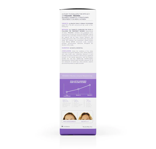 for Thinning Hair for Women with 2% Trioxidil® adds new life to thinning hair with nutrients for the look of fullness, volume and shine. Hair and scalp are infused with our triple action hair health Trioxidil® complex, biotin, and soothing jojoba oil, plus powerful herbal extracts. These ingredients have gone through rigorous testing and research to ensure the best support great hair