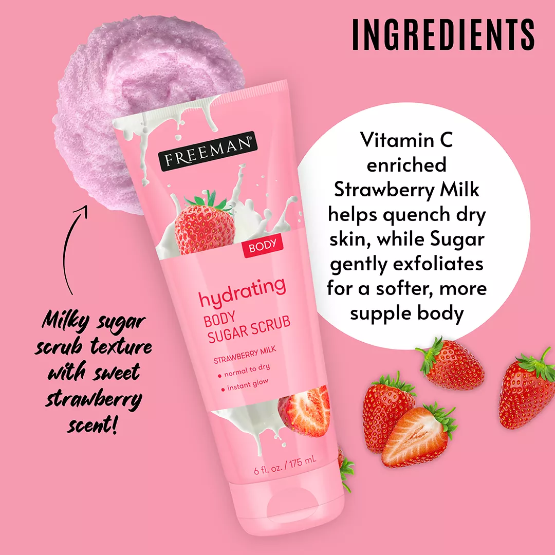 Freeman Body Scrub HYDRATING Strawberry Milk, 6oz