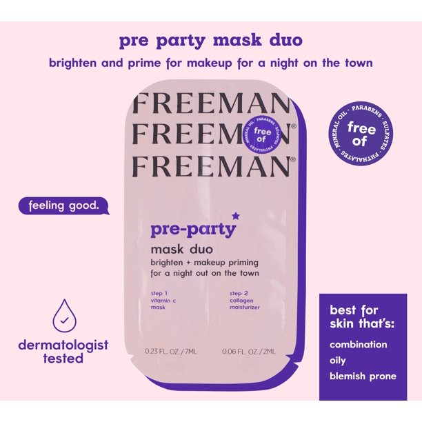 - Our Freeman Pre-Party Priming Facial Mask Duo helps brighten and prep for makeup for a night out on the town