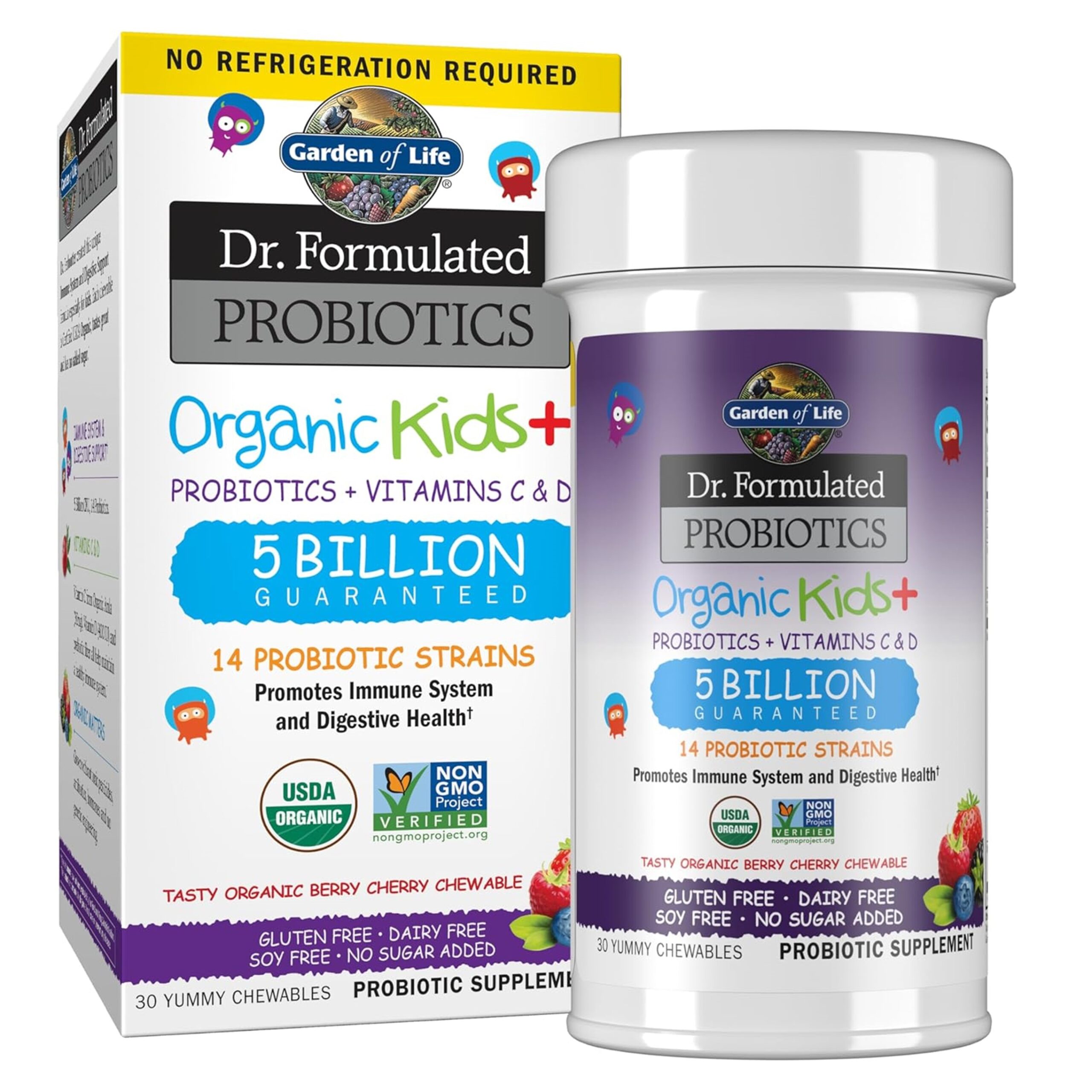 Give your kids 3-For-1 immune system and digestive support† with Dr. Perlmutter formulated Organic Kids+. A Certified USDA Organic, Non-GMO Project Verified, delicious chewable, kid-friendly probiotic—with 14 probiotic strains and 5 billion CFU, plus vitamins C & D, no added sugars or sweeteners and flavors they will love.