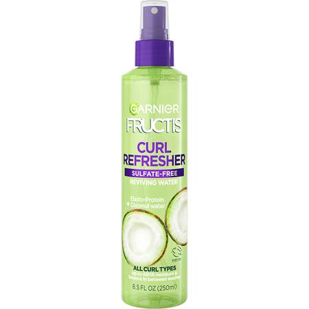 Garnier Fructis Curl Refresher Reviving Water will have your hair bursting with hydration for up to 2 days. It instantly knocks out frizz and brings back bounce to your curls in between washes.