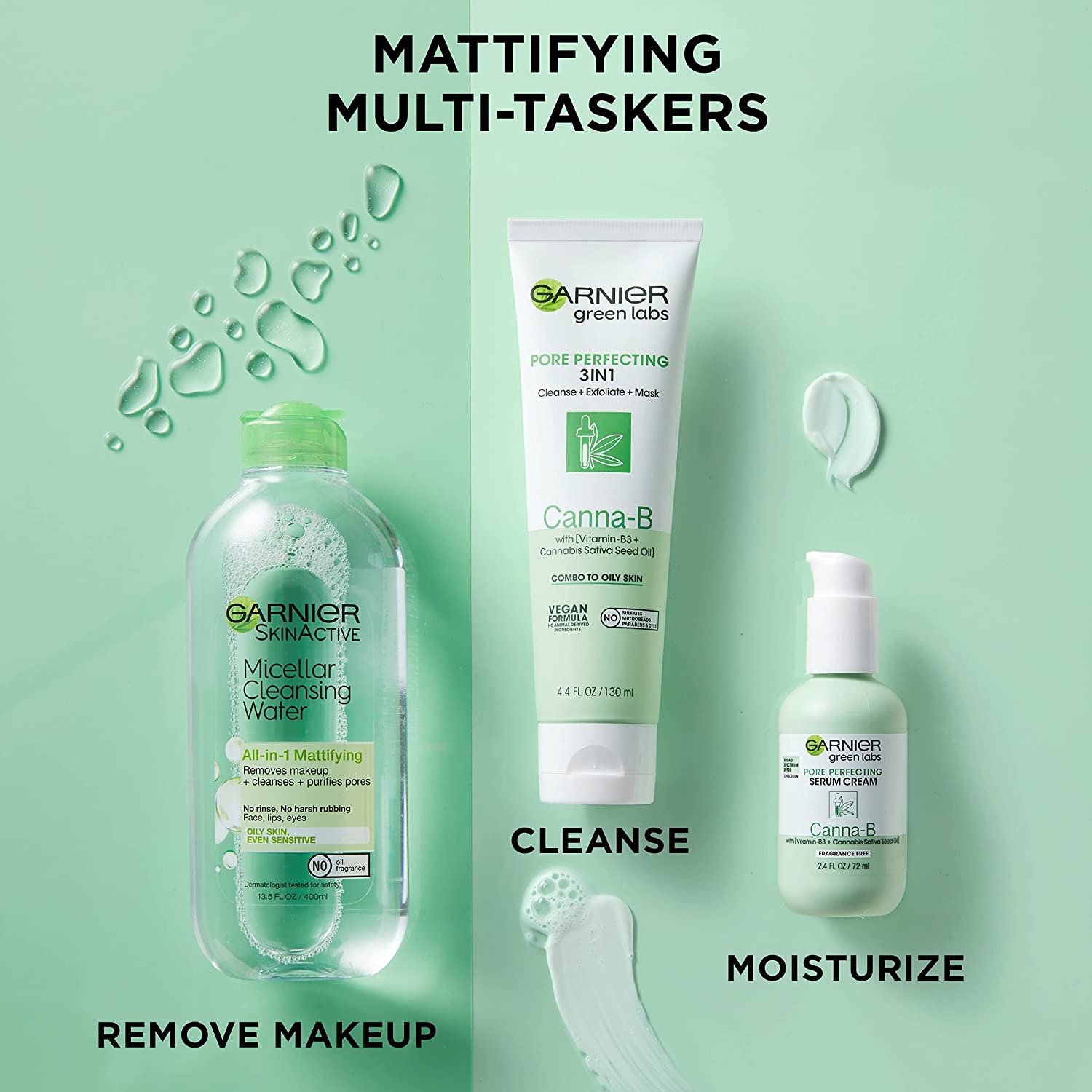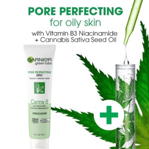Garnier SkinActive Green Labs Canna-B Pore Perfecting 3-in-1 Face Wash Exfoliator Mask with Niacinamide Vitamin B3 Cannabis Sativa Seed Oil for Combination to Oily Skin 4.4 Fl Oz (Packaging May Vary)
