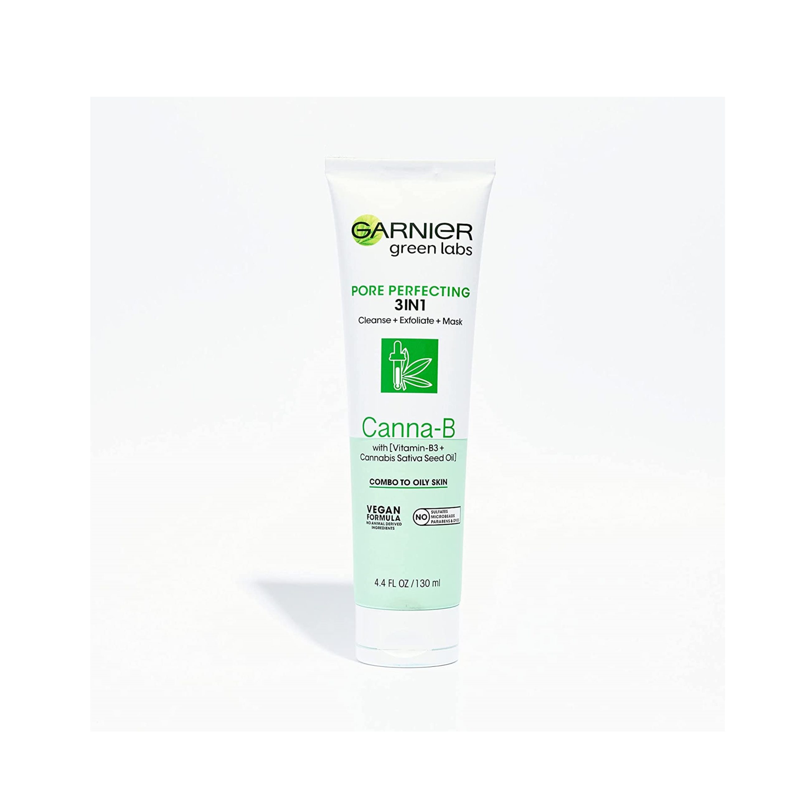 - Garnier Green Labs Pore Perfecting 3-in-1 Face Wash + Exfoliator + Face Mask is a scrub-free face wash, gentle exfoliator, and face mask