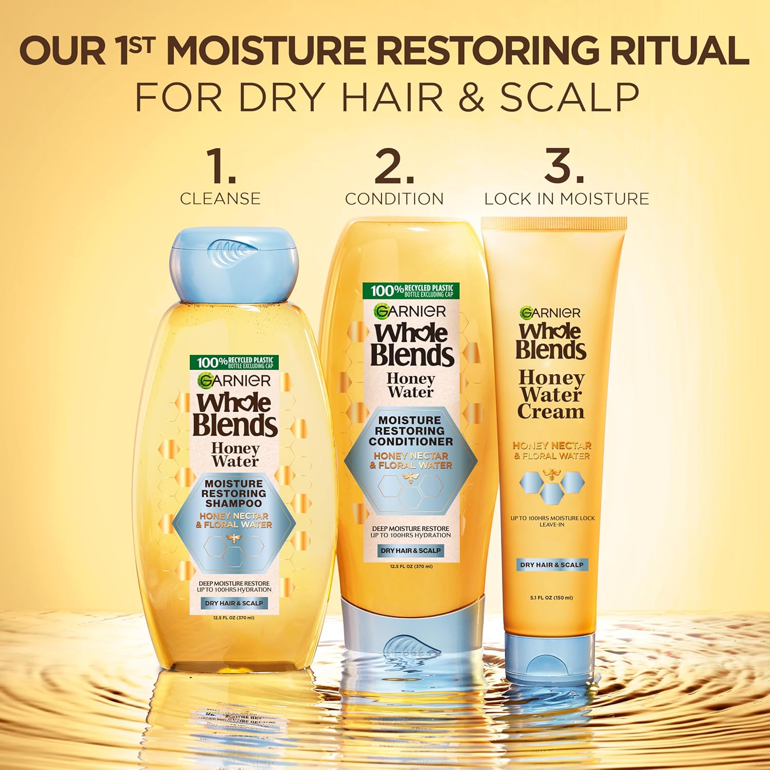 If your hair and scalp are feeling dry, this Honey Water Shampoo is for you! Experience up to 100 hours of locked-in moisture with the hydrating Whole Blends Honey Water system, featuring shampoo, conditioner, and leave-in cream.