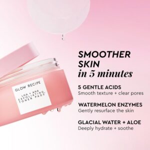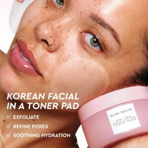 Glow Recipe LHA + AHA Toner Pads – Korean Exfoliating Toner for Face – Pore Minimizer – Hydrating Toner Pads – 5 Gentle Acids, Watermelon Enzymes, Hydrating Botanicals (60 Face Pads)